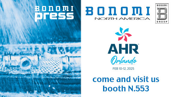 From February 10th to 12th, come and visit us at booth 553 in one of the most important events in the HVACR industry. Visit us there and discover all our 100% made in Italy solutions for plumbing and industrial applications. We look forward to introducing you to our new press system for copper pipes, BONOMI PRESS: thanks to its easy and safe installation, its noble and bacteriostatic material and its innovative leak detection device, it is designed to meet the main requirements of the plumber.
